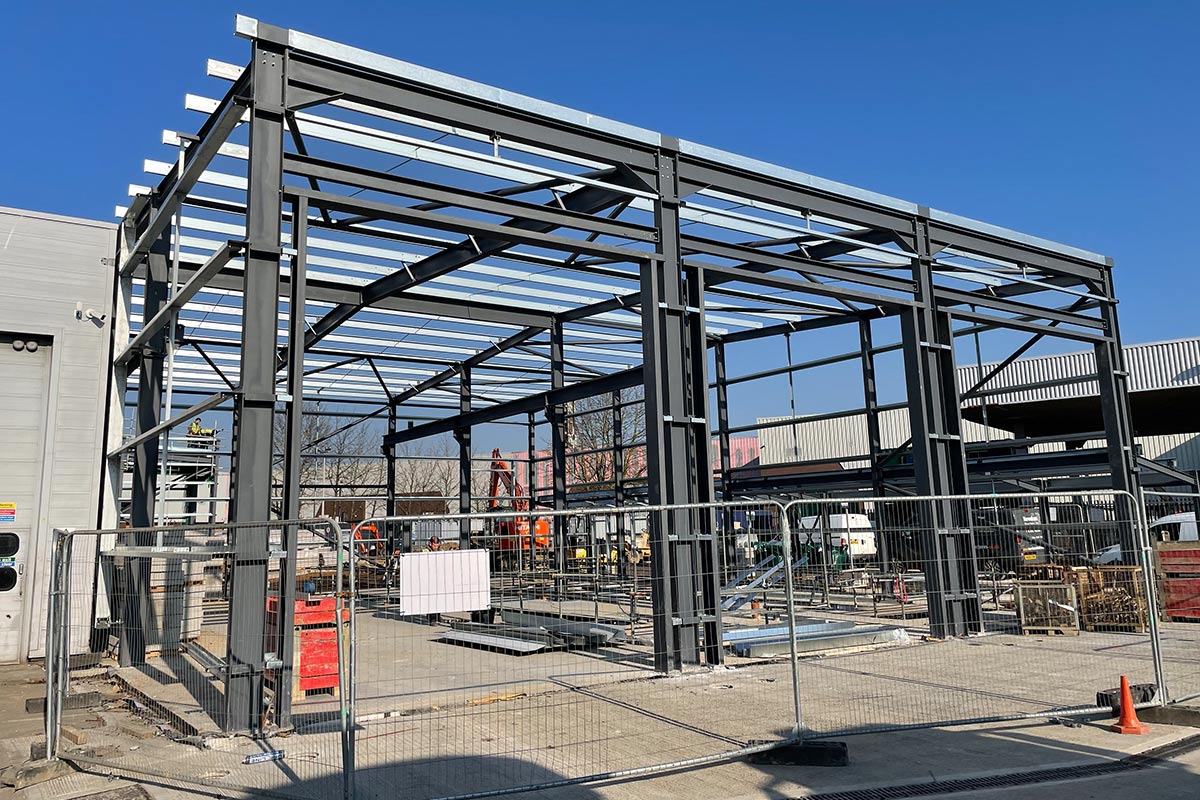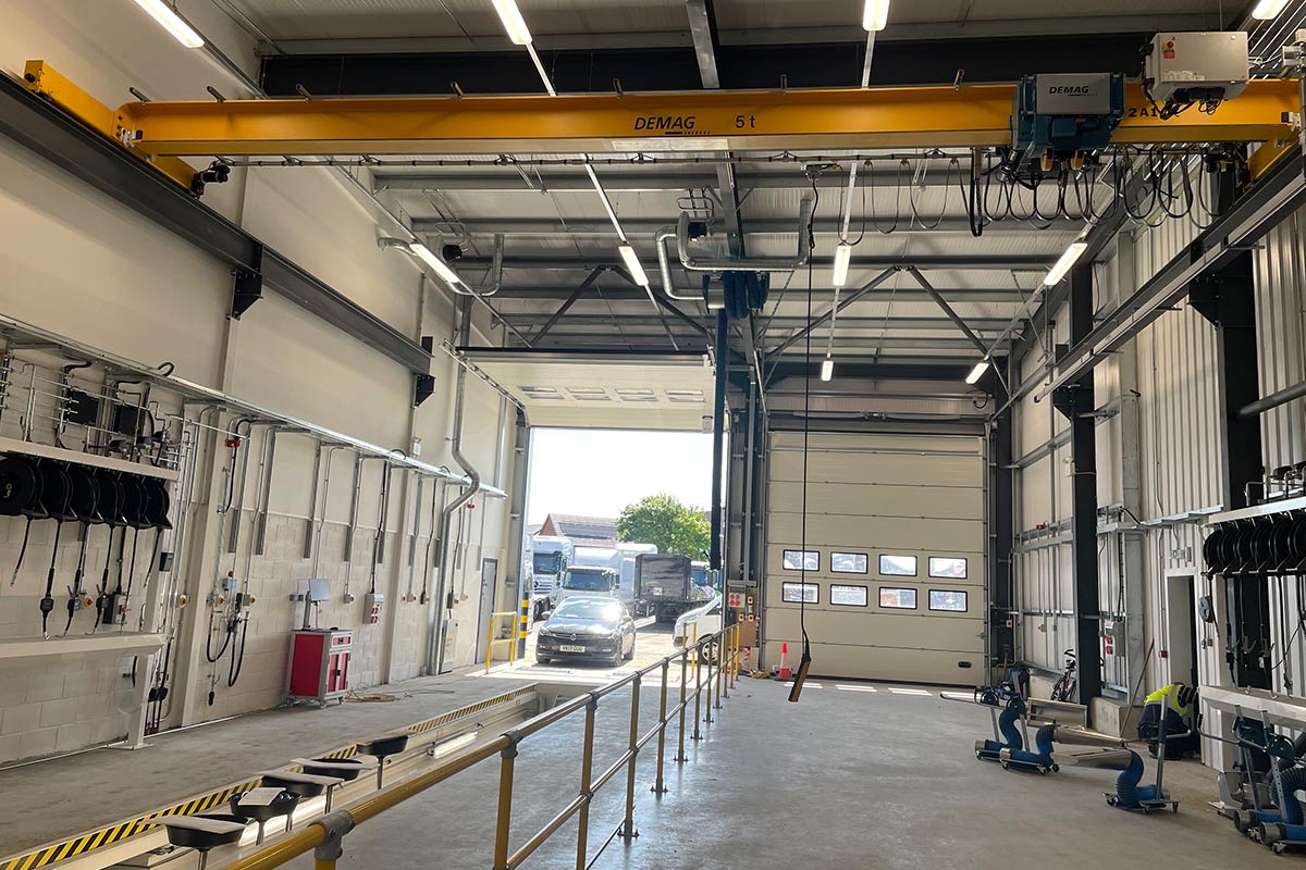 The extensions we constructed of steel frame, clad in kingspan panels. Roller shutter doors, lorry inspection pits and an overhead crane were installed into make the workshops modern and highly useable spaces.